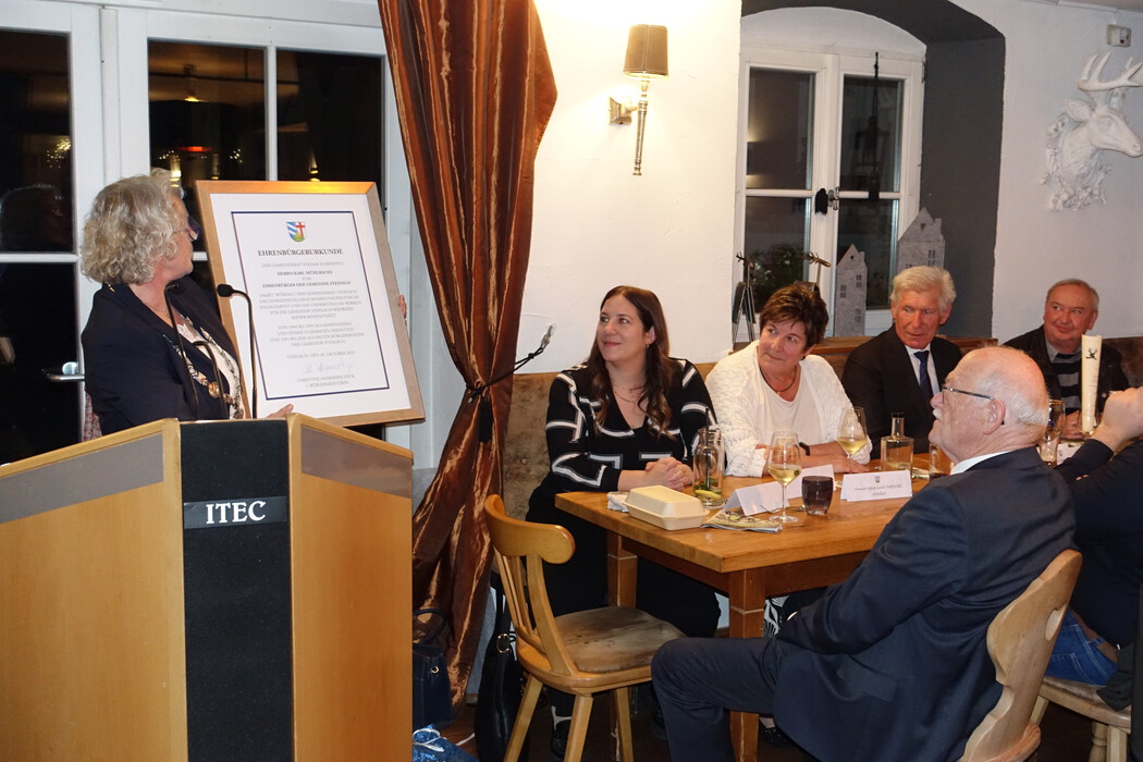 In einem festlichen Rahmen im Landhaus Krone ist am 30. Oktober 2025 Altbürgermeister Karl Mühlbauer zum Ehrenbürger der Gemeinde Steinach ernannt worden. Bürgermeisterin Christine Hammerschick würdigte das jahrzehntelange Wirken ihres Vorgängers, bevor sie ihm die Ehrenbürgerurkunde überreichte. Zu der Feierstunde waren alle Gemeinderäte aus seiner Amtszeit und der aktuelle Gemeinderat, ehemalige Mitarbeiterinnen und Mitarbeiter des Rathauses, das aktuelle Verwaltungs- und Bauhofteam sowie die Geistlichen der Pfarreien Steinach und Münster geladen.